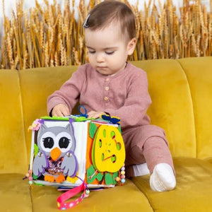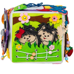 È il giocattolo più versatile per i bambini fin dalla nascita. Infatti, sei pezzi di feltro con lacci possono essere facilmente trasformati in un interessante busycube, in un tappetino, in un bordo sicuro per il lettino e persino in un libro morbido con immagini del mondo naturale. Gli elementi colorati stimolano la percezione dei colori e le capacità sensoriali e contribuiscono allo sviluppo del bambino fin dai primi mesi di vita.