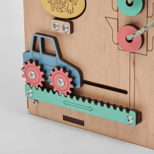 Jedes Element auf dem Activity Board hat seine eigene Aufgabe: Verschlüsse zur Entwicklung feinmotorischer Fähigkeiten, Reißverschlüsse zur Schulung von Verschlussfertigkeiten und zur Förderung der sensorischen Wahrnehmung, Sortierer zur Entwicklung des logischen Denkens und Problemlösungsfähigkeiten sowie vieles mehr. Die Sortierfiguren sind dank der Schnüre sicher befestigt und gehen nicht verloren. Im Inneren des neuen Hauses befindet sich auch eine Push-Light-Taschenlampe, die zweifellos jedes Kind faszinieren wird! Dank der Taschenlampe können Sie das Activity Board auch als Nachtlicht verwenden. Das Busy Kids® Activity Board ist aus hochwertigem Sperrholz gefertigt und mit wasserbasierten Lacken und Farben versehen, die für Ihr Kind sicher sind. Wir legen besonderen Wert auf Details und Qualität jedes Produkts, damit es Ihrer Familie lange Zeit dient und in bestem Zustand an die nächsten Kinder weitergegeben werden kann. Das Activity Board Haus Mini ist ein ausgezeichnetes Geschenk zum ersten Geburtstag Ihres Kindes und eignet sich hervorragend für die erste Begegnung mit Activity Boards. Vertrauen Sie auf die Montessori-Methode und ermöglichen Sie Ihrem Kind, sich durch Spiel zu entwickeln und die Welt zu entdecken. Mit Activity Boards schenken Sie Ihrem Kind die Möglichkeit, zu lernen und zu wachsen, indem es mit Freude spielt.