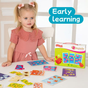 Doppelpuzzle mit 10 Bildern, 20 Stk Jedes Puzzle besteht aus 2 Teilen Erfahre mehr über Farben. Versuche, für jedes Tier eine Farbe zu finden. Entwickle Beobachtungsfähigkeiten, motorische Fähigkeiten, Hände-Augen-Koordination.